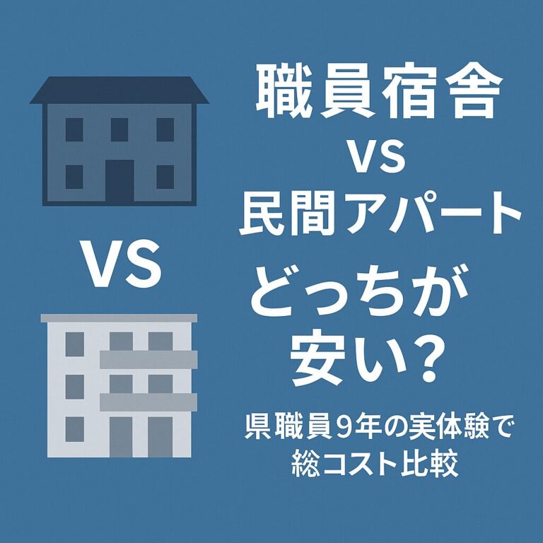 県職員として働き始めたとき、最初に迷うのが「官舎(職員宿舎)に入るべきか、民間アパートを借りるべきか」という住宅の選択でした。 家賃だけを見れば官舎が安そう。 でも実際に住んでみると、築年数・設備・立地・通勤距離・光熱費など、見えないコスト […]